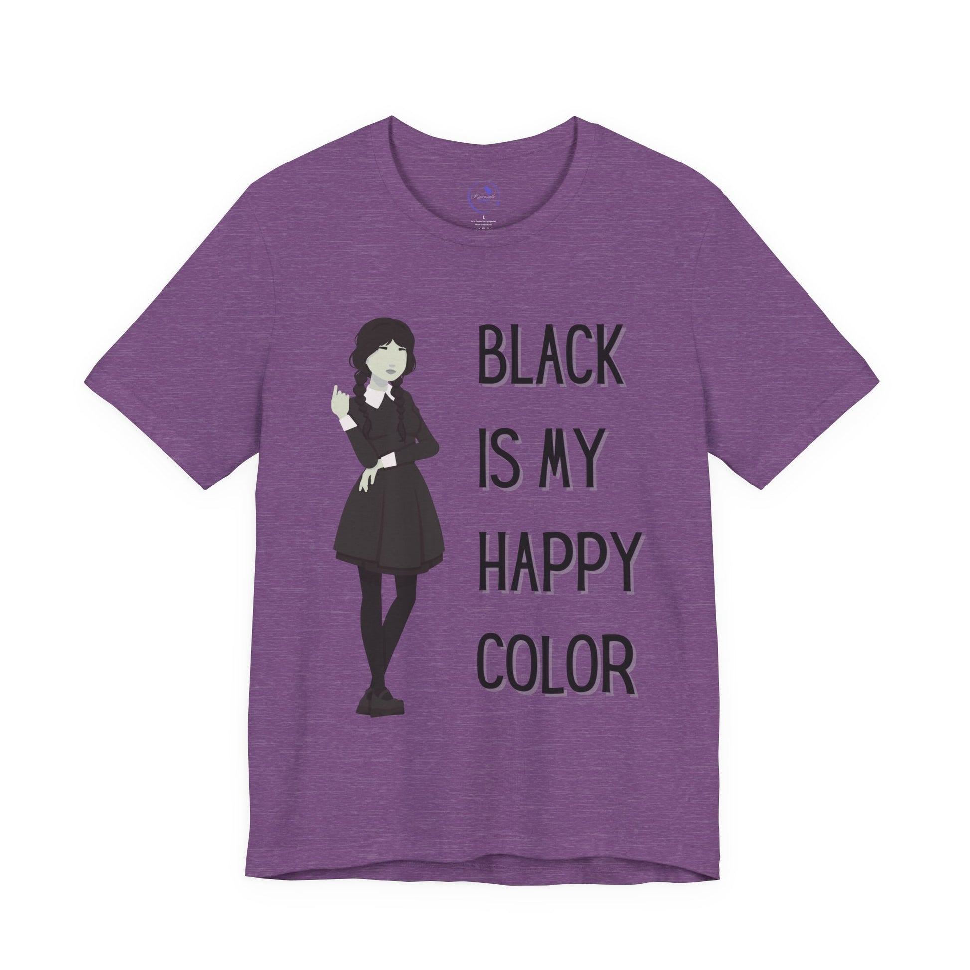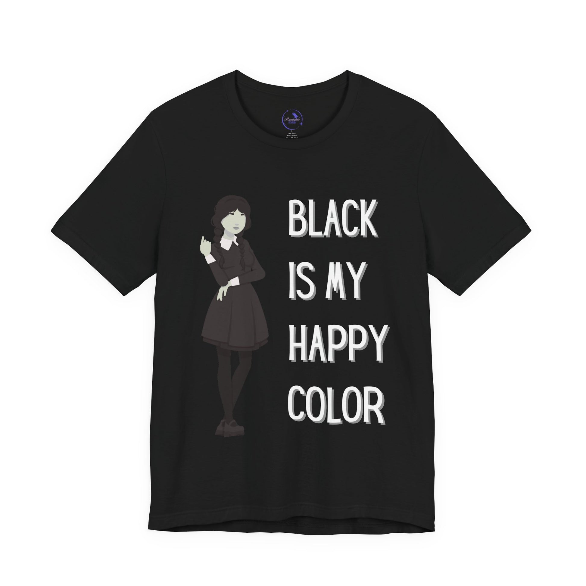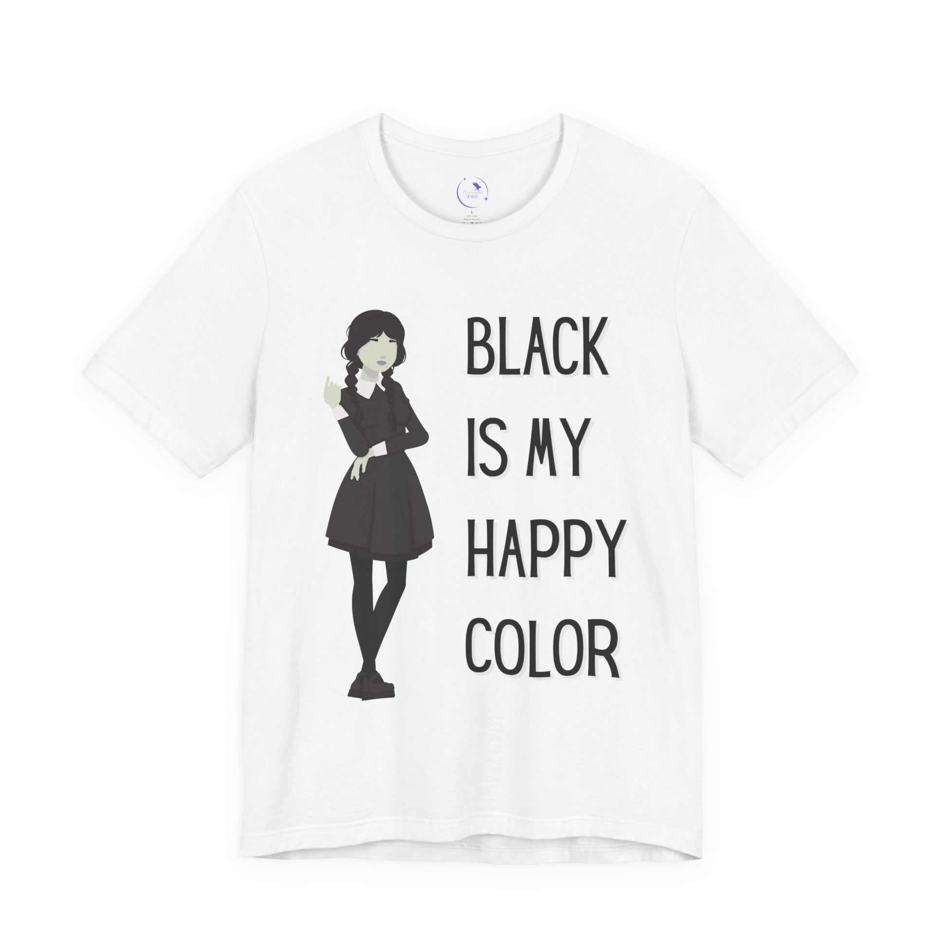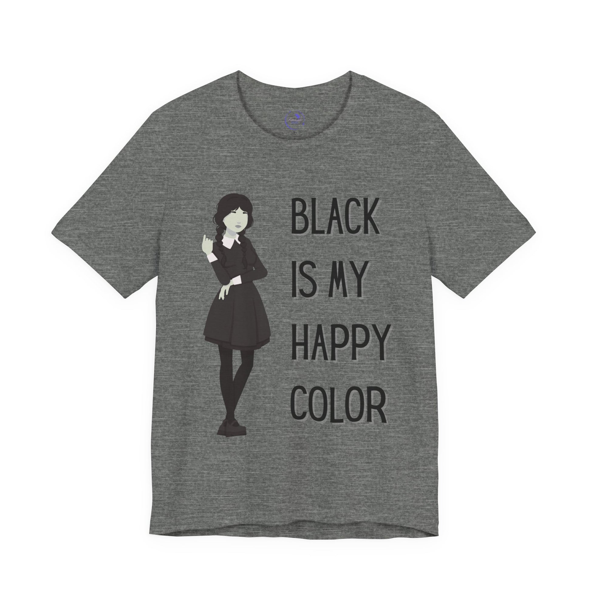 Ideal for art lovers, goth enthusiasts, or anyone with a unique flair, this tee can be worn on Halloween, quirky birthday parties, or just as an everyday go-to. Its eye-catching design boldly states, "Black is My Happy Color," adding a fun twist to your outfit. Celebrate your personal style with this must-have piece that resonates with confidence and creativity.