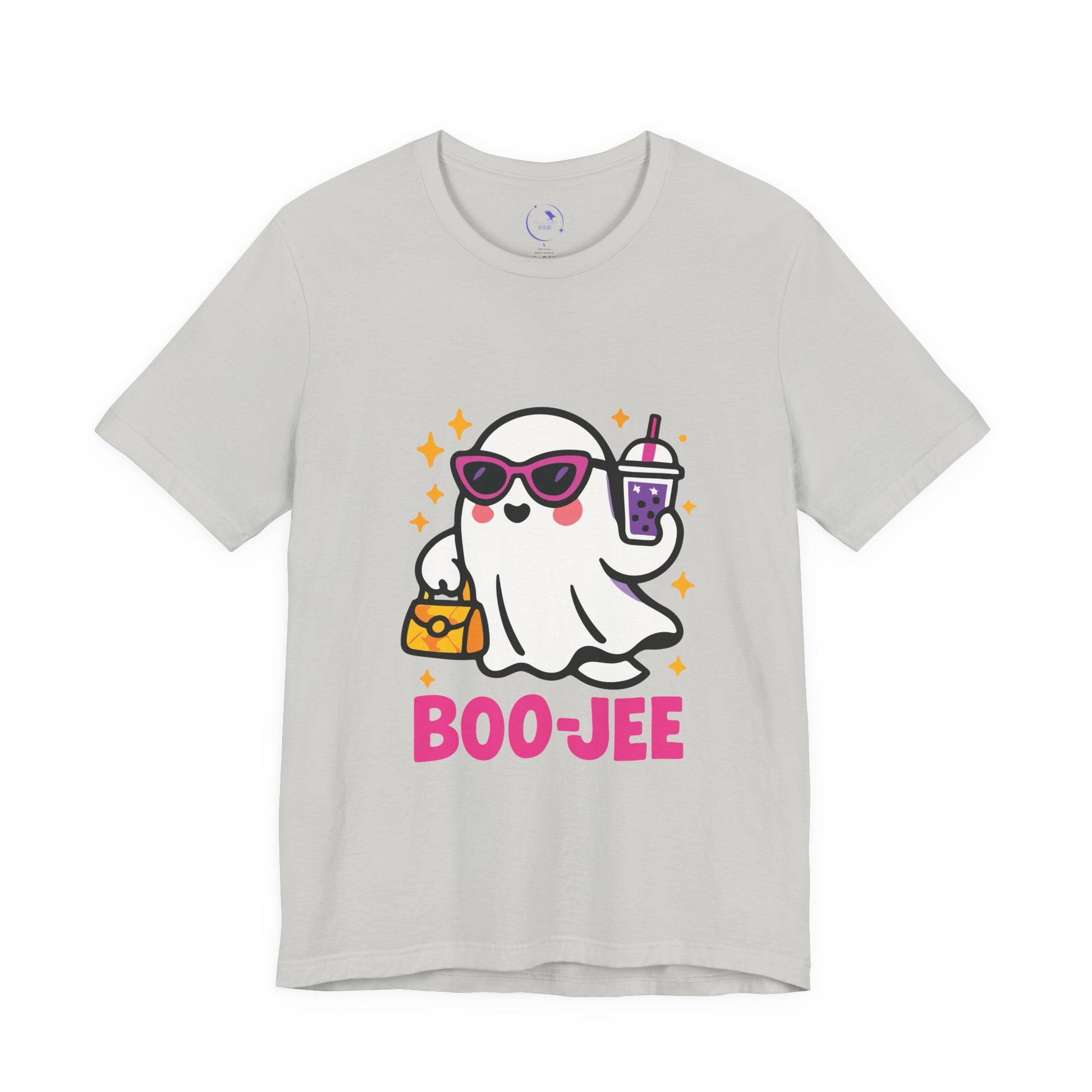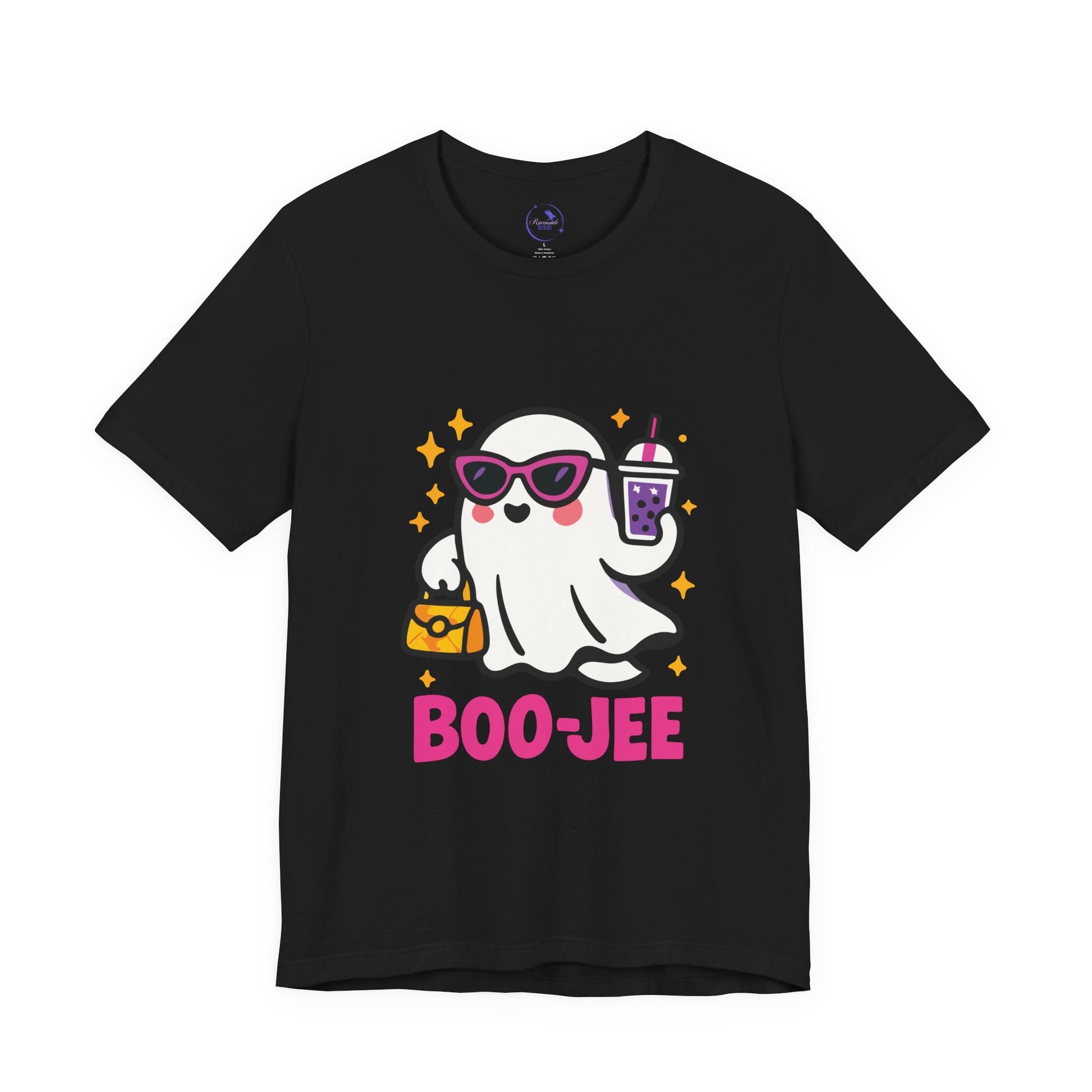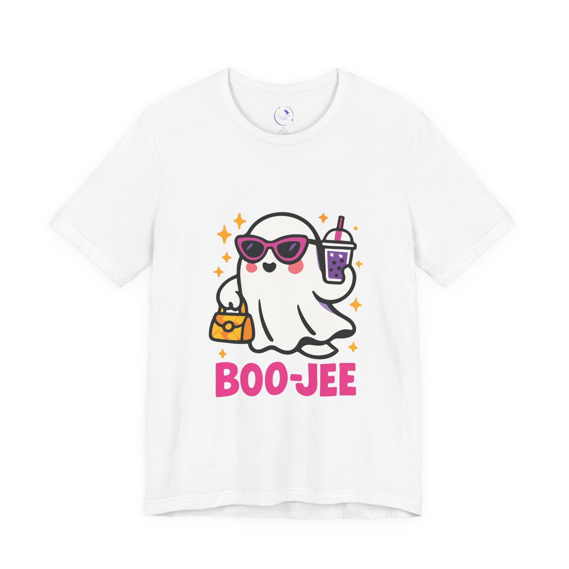 This funny and cute ghosts vibing T-shirt is the perfect apparel for Halloween. The humorous boo-jee pun design adds a lighthearted touch to your wardrobe, making it a fun conversation starter. It is relevant to those who enjoy Halloween celebrations and appreciate a good pun.