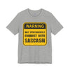 Introducing a stylish Unisex Jersey Short Sleeve Tee that brings a dose of humor and personality to your everyday wardrobe. With a playful 'Warning: May Spontaneously Combust with Sarcasm' design, this tee is perfect for those who appreciate wit and want to showcase their fun-loving side. The lightweight, breathable fabric makes it ideal for layering, whether you’re lounging at home or heading out with friends. It's an excellent choice for casual gatherings, birthdays, or just to brighten someone's day. Perfect for sarcasm enthusiasts or anyone looking to add a quirky touch to their outfit. Celebrate holidays like April Fool’s Day or simply elevate your casual wear with this fun tee!