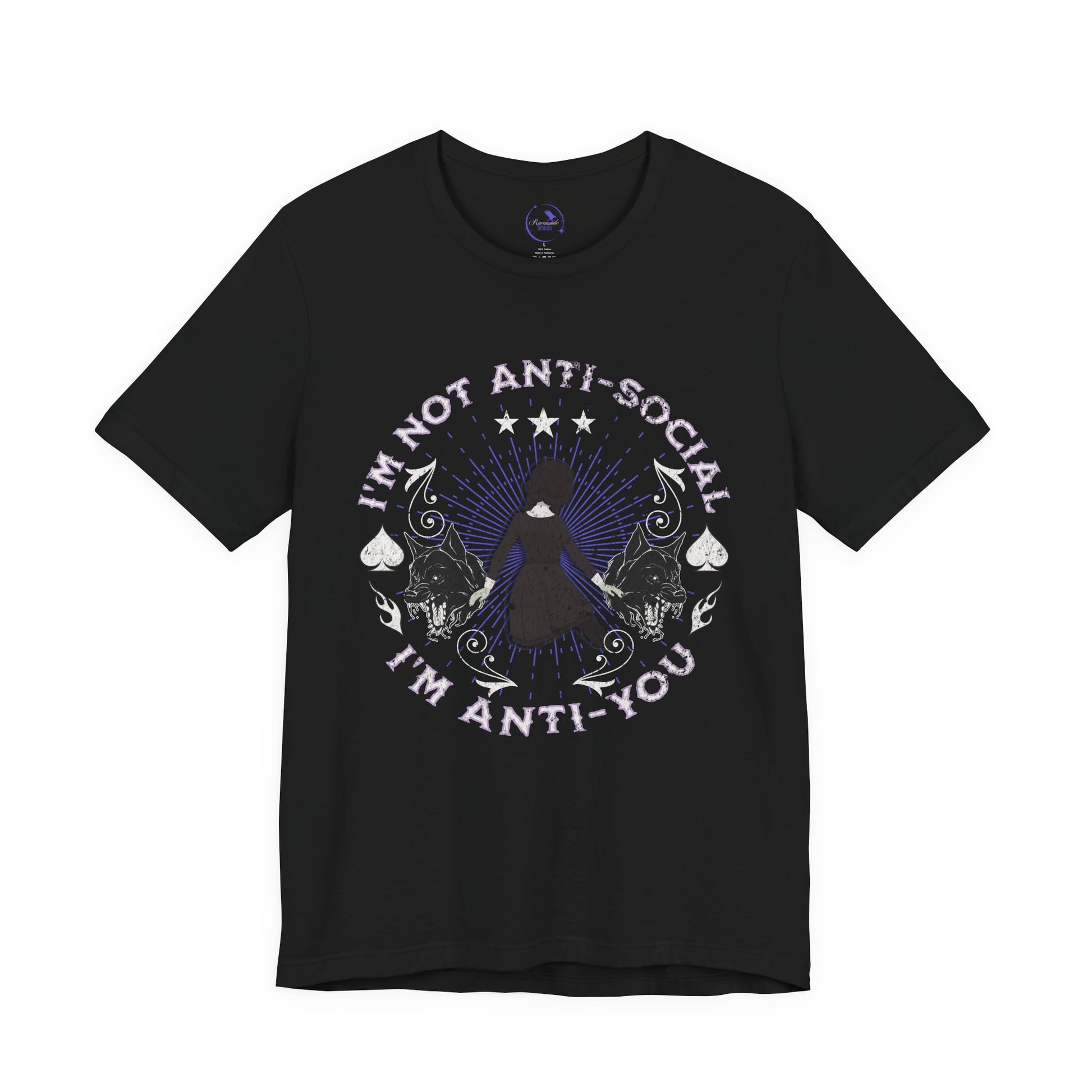 Ideal for art lovers, goth enthusiasts, or anyone with a unique flair, this tee can be worn on Halloween, quirky birthday parties, or just as an everyday go-to. Its eye-catching design boldly states, 'I'm Not Anti-Social, I'm Anti-You', adding a fun twist to your outfit. Celebrate your personal style with this must-have piece that resonates with confidence and creativity.
