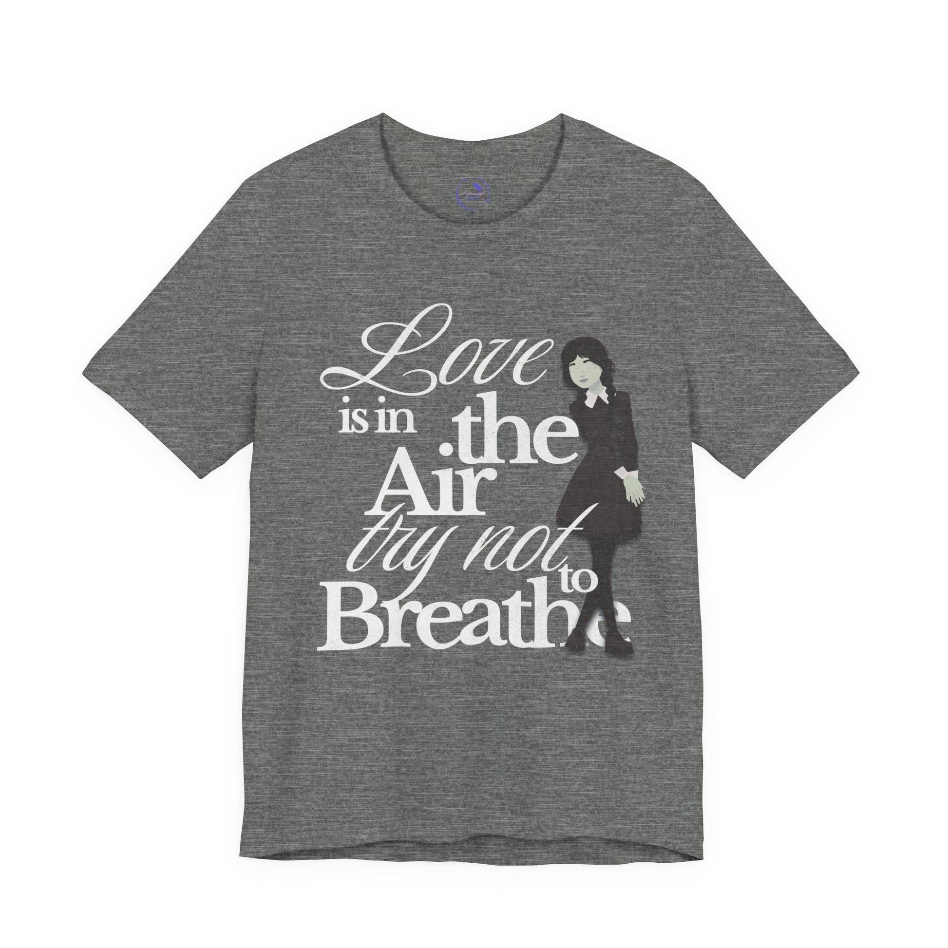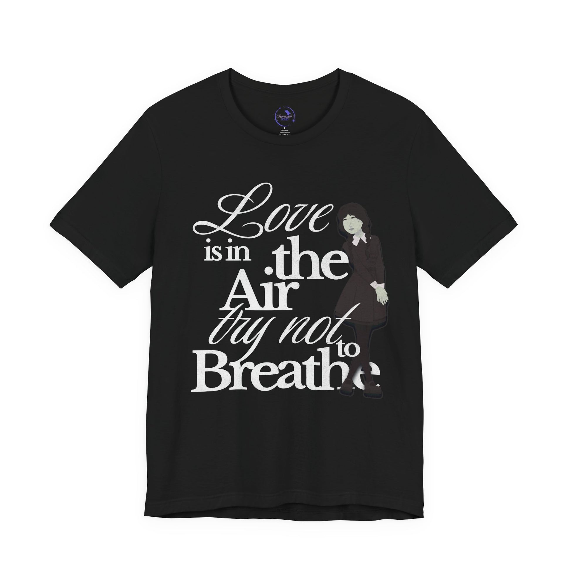 Ideal for art lovers, goth enthusiasts, or anyone with a unique flair, this tee can be worn on Halloween, quirky birthday parties, or just as an everyday go-to. Its eye-catching design boldly states, 'Love is in the Air' , adding a fun twist to your outfit. Celebrate your personal style with this must-have piece that resonates with confidence and creativity.