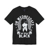 This stylish Unisex Jersey Short Sleeve Tee is the perfect addition to any fashion-forward wardrobe. With its comfortable fit and classic crew neckline, it exudes a casual vibe ideal for relaxed gatherings or semi-formal settings. Made with 100% Airlume combed and ring-spun cotton, it feels soft against your skin and is lightweight enough to layer comfortably throughout the year. Whether you’re heading out with friends, lounging at home, or celebrating spooky season, this tee effortlessly adapts to your lifestyle. It’s great for fans of pop culture, especially those who appreciate a touch of humor in their attire. Perfect for birthdays, themed parties, or just everyday wear, this tee makes a stylish statement for anyone who believes in embracing their unique style.
