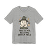 This funny and cute ghosts vibing T-shirt is the perfect apparel for Halloween. The humorous This Is My Resting Witch Face design adds a lighthearted touch to your wardrobe, making it a fun conversation starter. It is relevant to those who enjoy Halloween celebrations and appreciate a good pun.